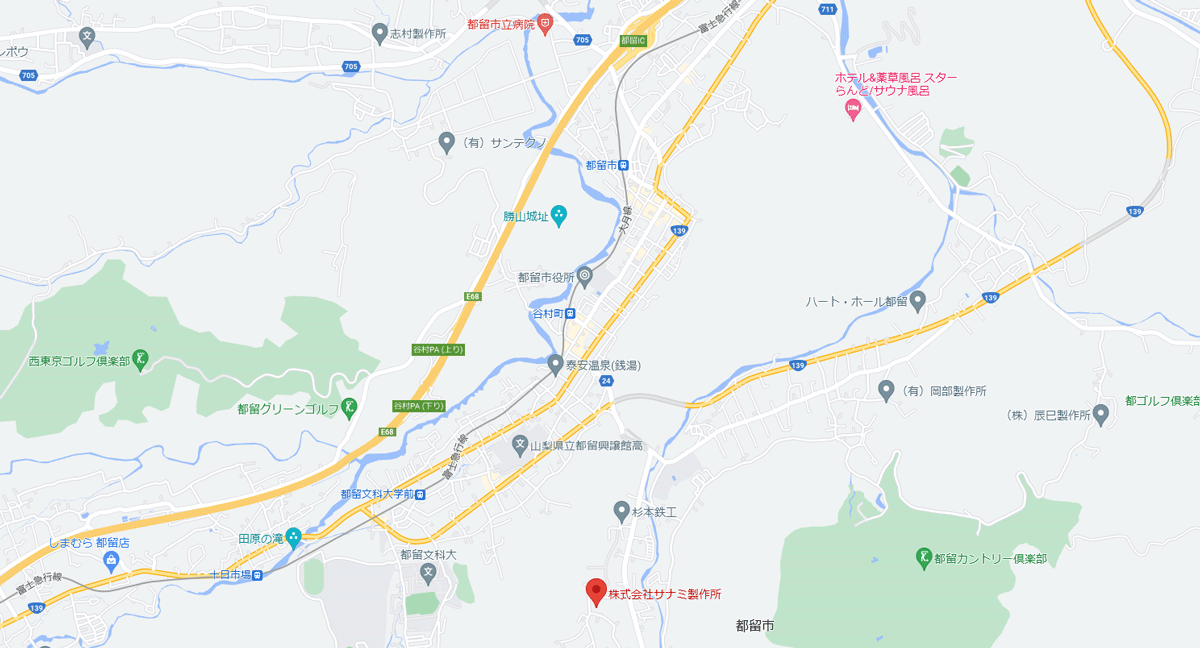 ホーム > アクセス 本社所在地 〒402-0024 山梨県都留市小野224-2 (中央自動車道富士吉田線 都留インターチェンジから車で約10分) Copyright(c) 2022 SANAMI CO.,LTD All Rights Reserved. TOP